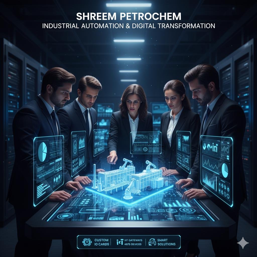 Shreem Petrochem’s software expertise spans Industry 4.0, Automation, RPA, OPC, RTU, PLC, SCADA, and HMI integration—delivering intelligent, connected, and data-driven operations. Our team is skilled in configuring automation layers, developing custom dashboards, and linking field devices to enterprise platforms for real-time monitoring and control. We specialize in data acquisition, analytics, AI integration, digital twins, and process optimization using modern communication protocols and industrial IoT frameworks. These software capabilities (UI Path, AVEVA, GE, Kepware, Allen Bradley Many more) enable predictive maintenance, reduced downtime, and smarter business decisions. As part of our portfolio, we provide end-to-end automation and digital transformation solutions to enhance productivity, transparency, and profitability across process industries.